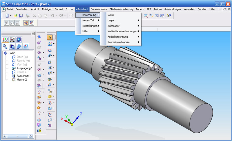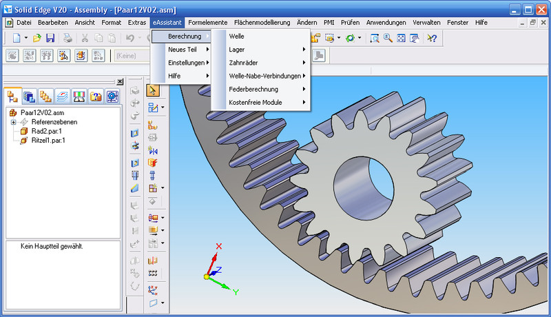 Das CAD-PlugIn realisiert zusätzlich eine bidirektionale Kopplung zwischen dem eAssistant und Solid Edge. Sind nach der Berechnung und Erzeugung des 3D-Modells Änderungen erforderlich, kann das Modell mühelos an die modifizierte Berechnung angepasst werden. Diese Funktionalität steht für außen- und innenverzahnte Gerad- und Schrägstirnräder, für evolventische Zahnwellenprofile und für Hohl- und Vollwellen jeweils als Einzelteile im Solid Edge Traditional Mode (nicht Synchronous) zur Verfügung. Somit lassen sich Konstruktionen während des Entwicklungsprozesses schnell und einfach auf Knopfdruck aktualisieren.