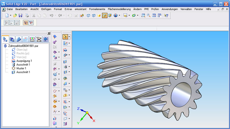 Weiterhin können auf Basis der Berechnung gerad-, schräg- und spiralverzahnte Kegelräder automatisch direkt als 3D Solid Edge-Teil generiert werden.