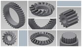 • Single cylindrical gears (external/internal), cylindrical gear pairs, planetary gear trains, three- and four-gear train systems, gear racks, involute splines, straight, helical and spiral bevel gears
