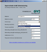 After the input of the loads (bending load, torsion load or both) and the desired safety factor, the required minimum diameter will be calculated.
