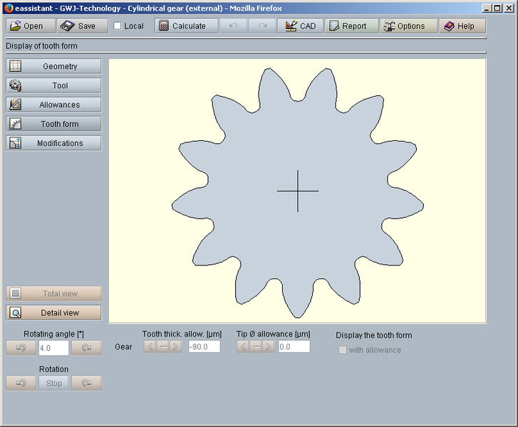 One particular highlight of the calculation module is the representation of the calculated gear tooth form. For this representation, the minimum, mean and maximum allowances for the tooth thicknesses and tip diameters can be selected. The program also gives hints and warnings, for example in terms of gear tolerances which appear in the calculation report depending on the gear quality.