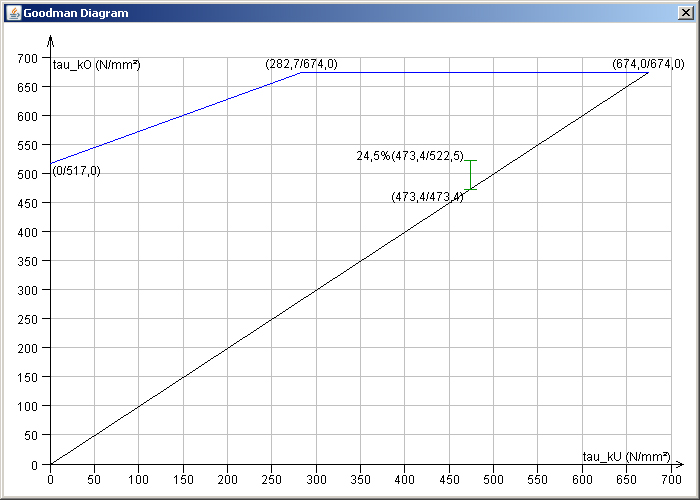 Les principaux résultats, à savoir l'utilisation statique et dynamique de la contrainte autorisée, le débattement du ressort et l'utilisation des courses élastiques admises sont déjà clairement affichés en cours de frappe. De plus, il y a la possibilité d'obtenir les diagrammes de Goodman et de force-course, qui peuvent être agrandis en cliquant dessus.