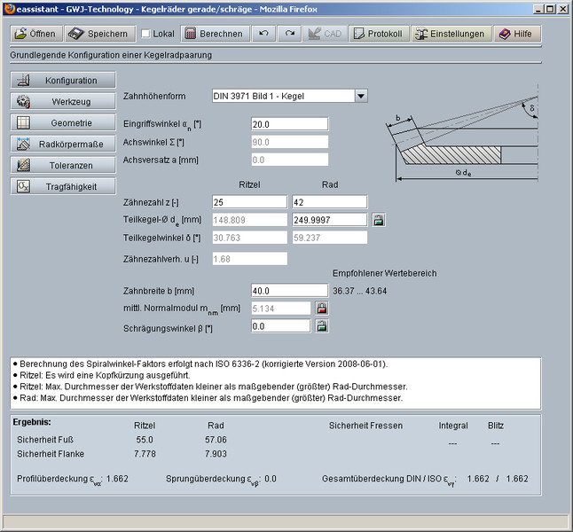 Moduł ten pozwala na łatwe i szybkie obliczanie geometrii stożkowych kół zębatych