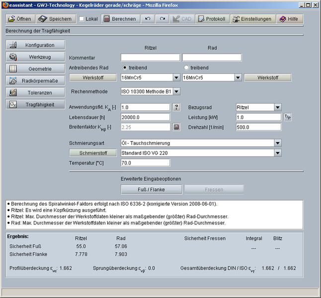 Obok obliczeń geometrii istnieje możliwość obliczania nośności w oparciu o normę ISO 10300 metodę B1, określenie zabezpieczeń (granic wytrzymałości) na przestrzeni danego czasu czyli tzw. trwałości eksploatacyjnej. Podczas obliczeń określone zostają parametry pozwalające na uniknięcie uszkodzeń zębów jak: zmęczenie powierzchniowe, załamanie zmęczeniowe, zatarcie. Odpowiednie obliczenia geometryczne, dobór odpowiednich materiałów jak również środków smarnych pozwalają na ich eliminację oraz uzyskanie optymalnych warunków wytrzymałościowych już w procesach projektowych.