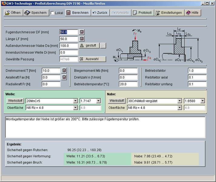 TU Chemnitz 1997. W dalszych etapach obliczeń istnieje możliwość określenia rozmiaru piasty - średnicy zewnętrznej i wewnętrznej na podstawie książki prof. Hartmana "Berechnung und Auslegung elastischer Pressverbindungen" poprzez odpowiednią segmentację.