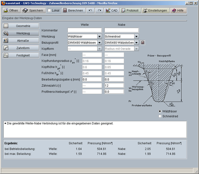 W celu ustalenia tolerancji, jakość uzębienia i cały szereg parametrów są określane zgodnie z normą DIN 5480, dla ułatwienia są one podane w formie list wyboru, z których można wybrać odpowiednie wartości. Dzięki czemu dopuszczalne odchylenia od wielkości zębów określonych w normie, są automatycznie podawane przez program.
