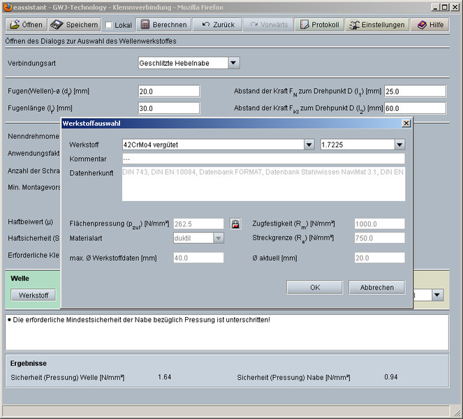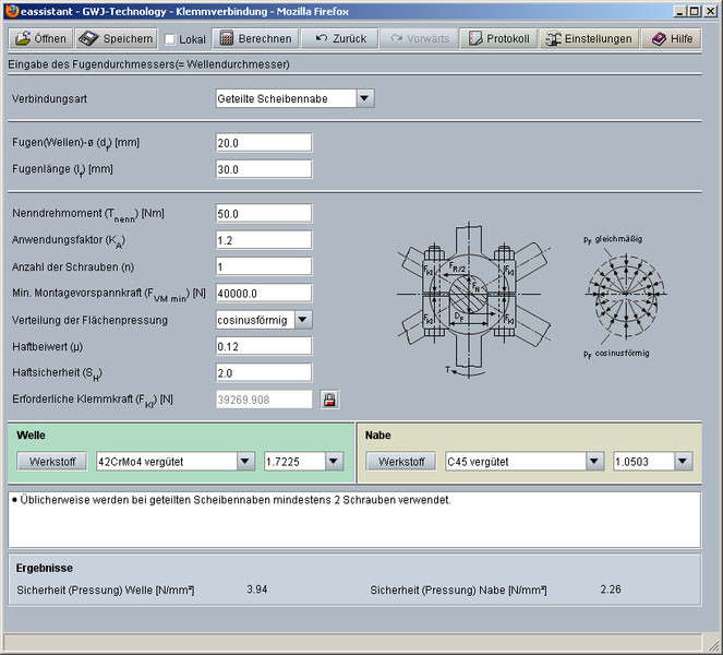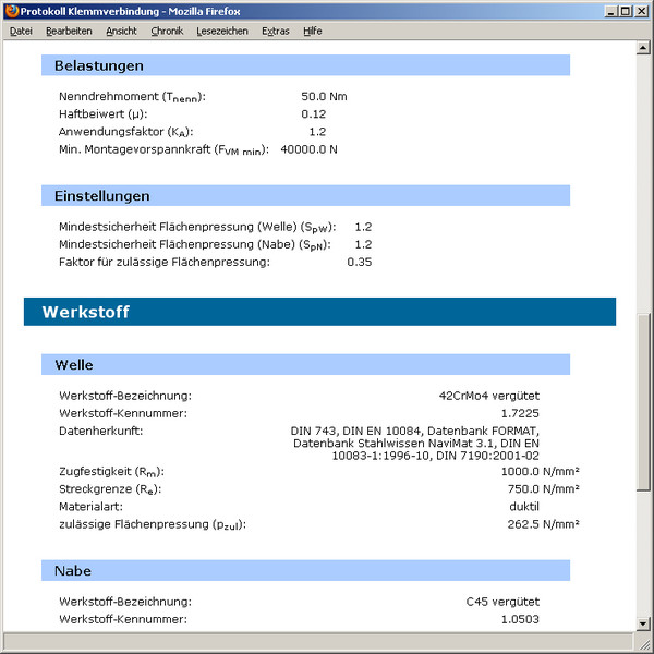 Obliczenia według Roloff/Matek „Maschinenelemente - Normung, Berechnung, Gestaltung“